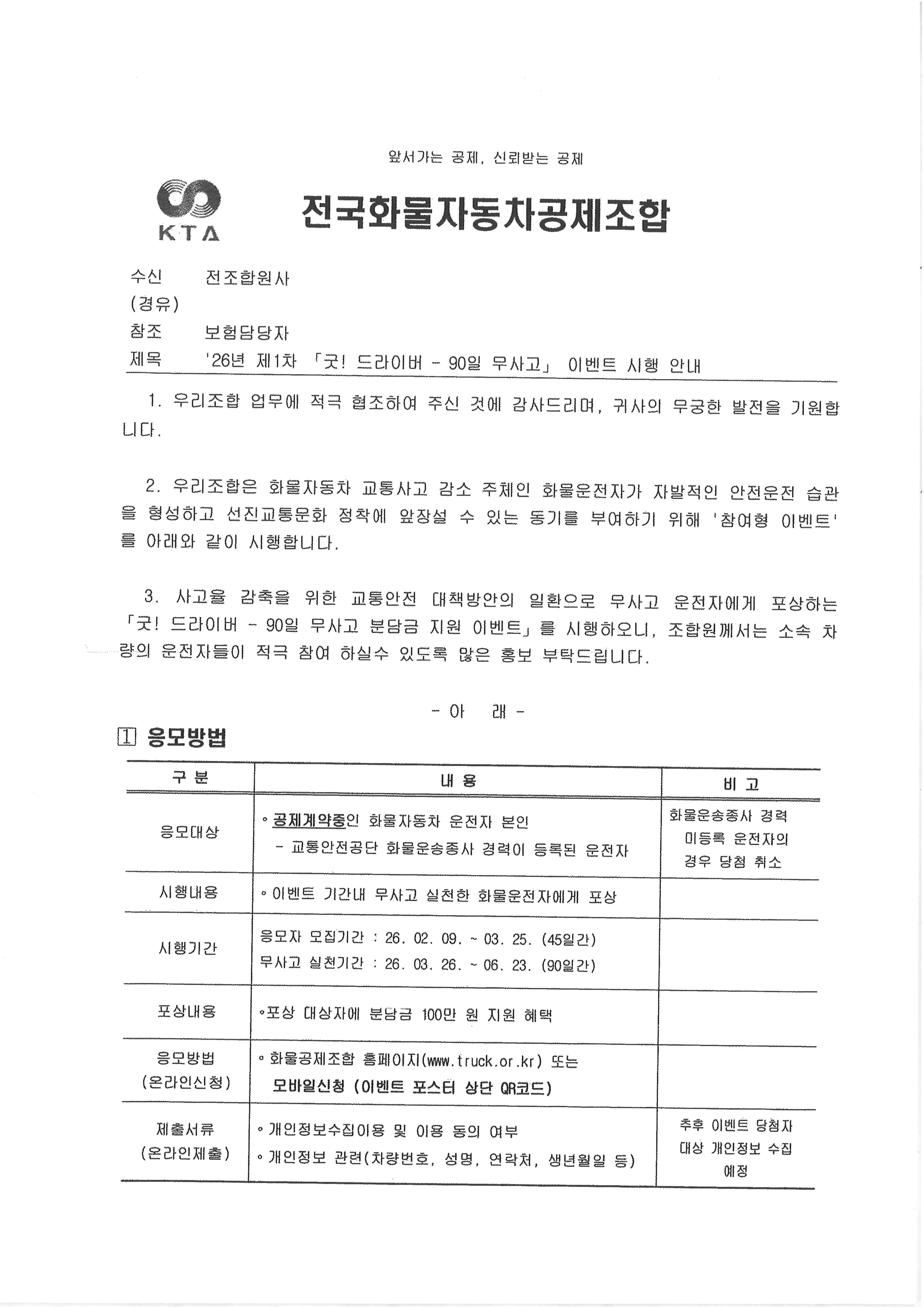 26년 제 1차 굿드라이버 90일 무사고 이벤트 진행 안내