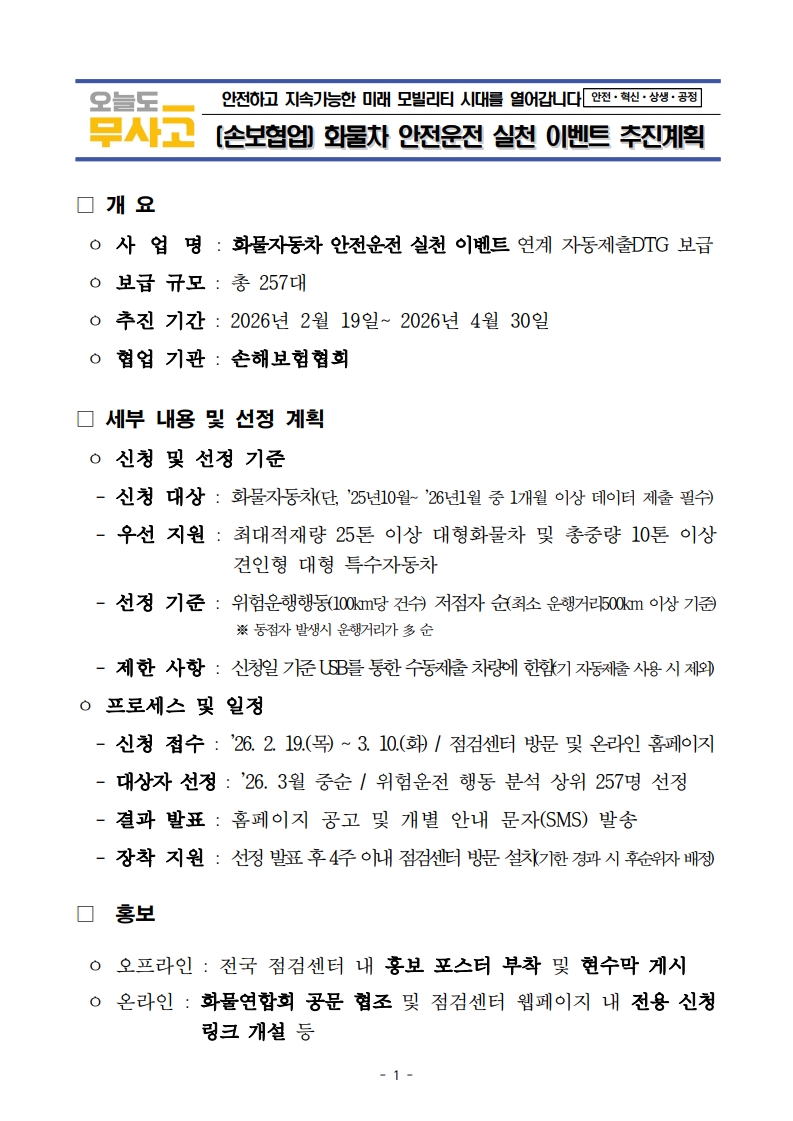 붙임 : 화물차 안전운전 실천 이벤트 추진계획 안내문 1부. 끝.