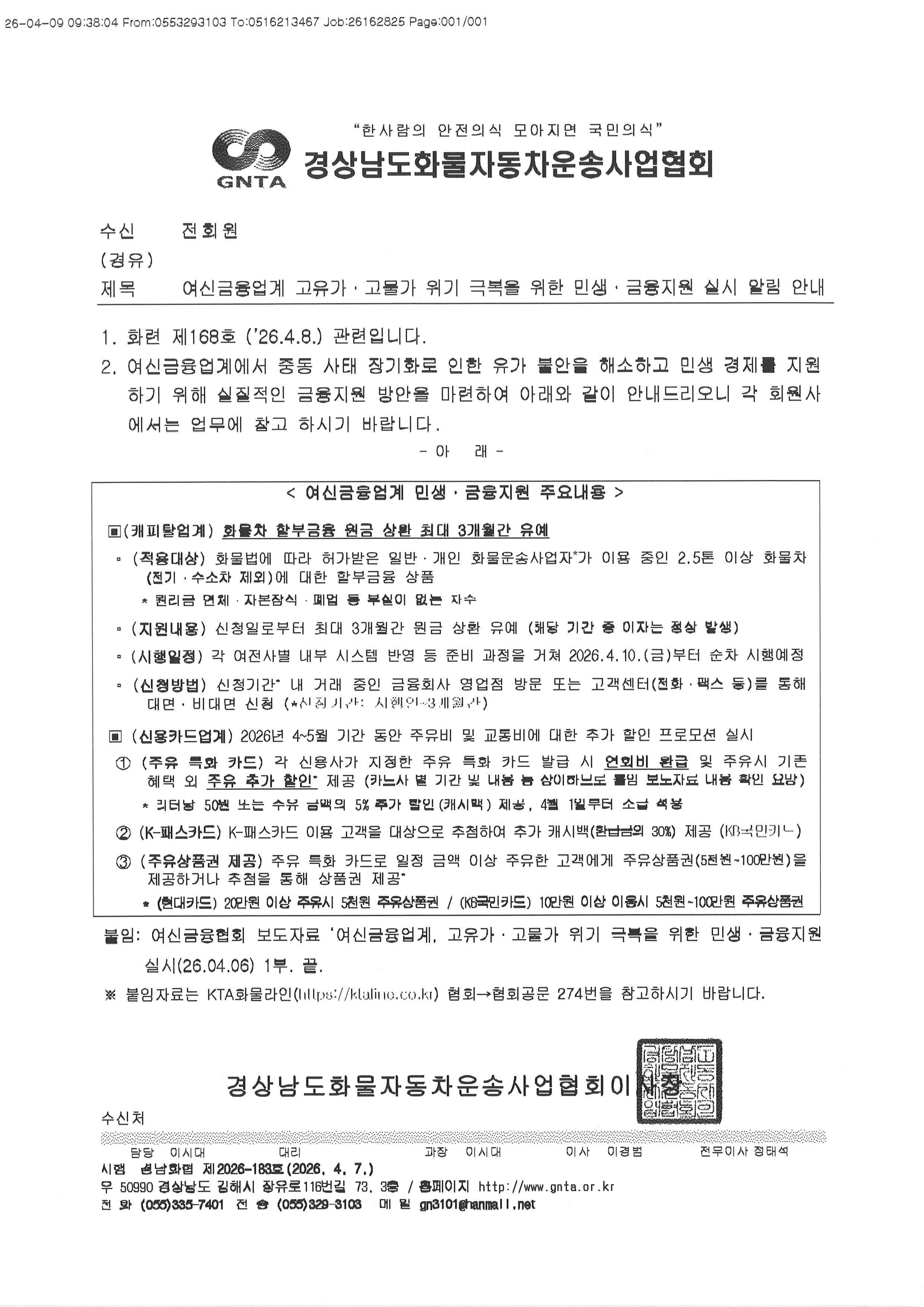 여신금융업계 고유가.고물가. 위기 극복을 위한 민생.금융지원 실시 알림 안내 관리자 0 21 04.09 12:02 2026.04.09 12:02 20260409114904.pdf (277.8K) + 1